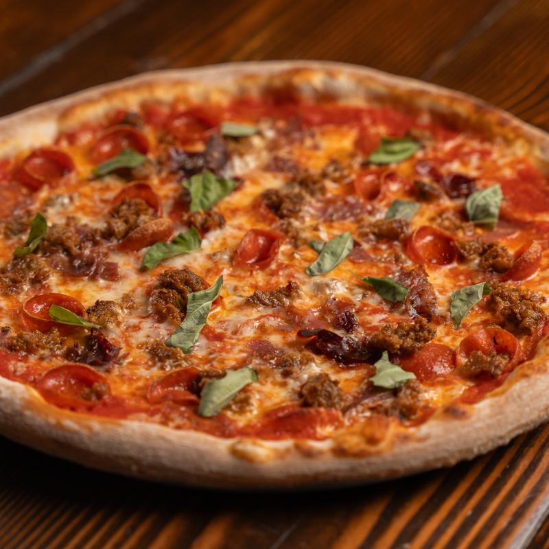 Red sauce, mozz, house made sausage, salami, pepperoni, fresh basil